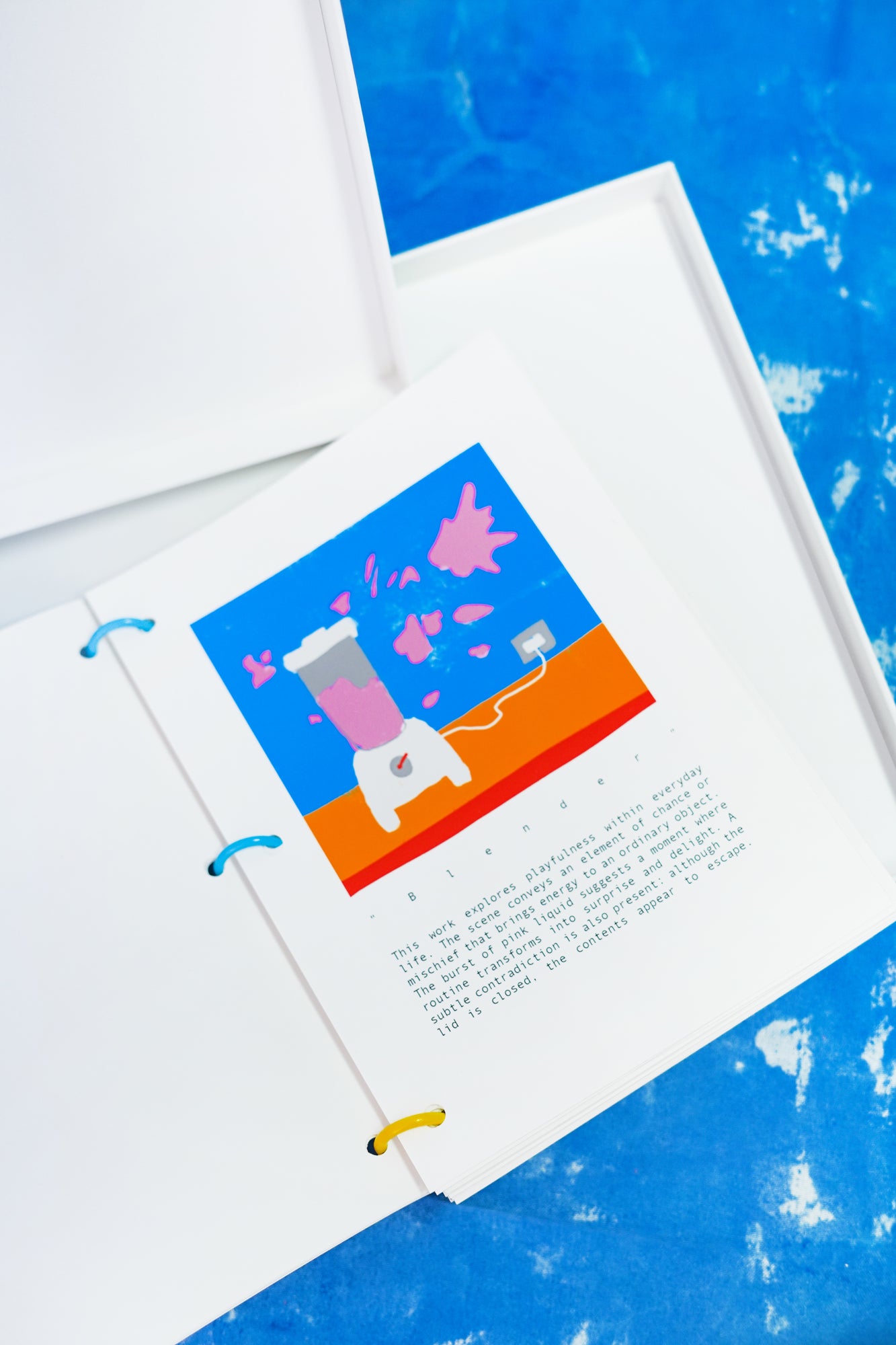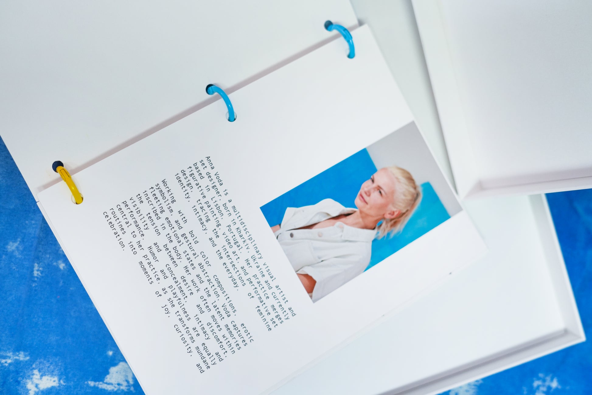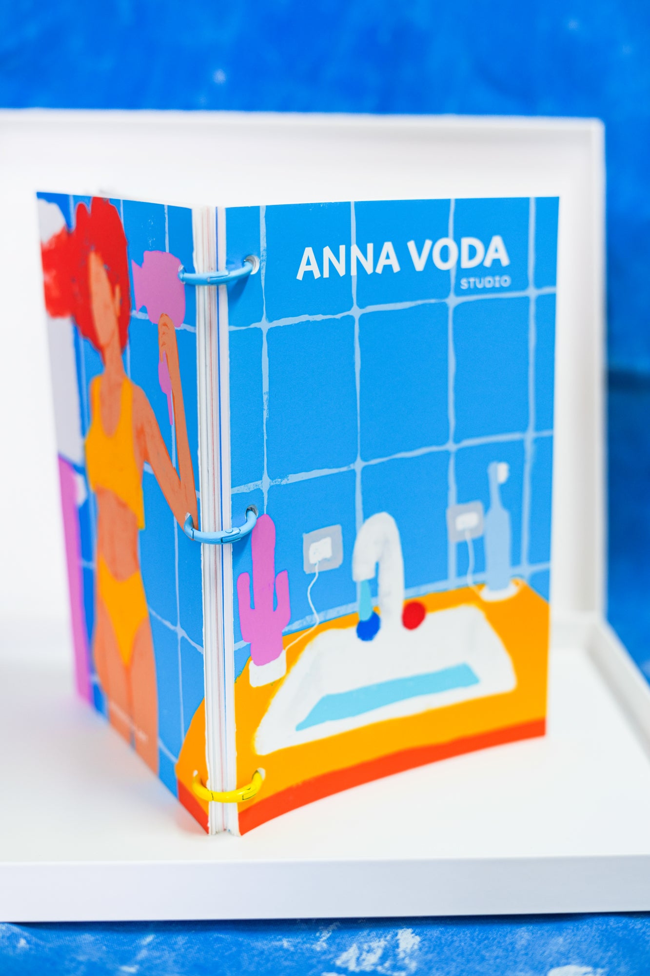 An A5 art book gathering three intimate series by Anna Voda—Celebrating the Mundane, Woman, and Love Is—where color, play, and desire turn everyday rituals into scenes of tenderness and charge. Over sixty works trace a choreography between humor and vulnerability, body and object, privacy and performance. Ring-bound for a tactile, studio-notebook feel and printed on 270 gsm cotton rag for rich color and an archival, softly textured touch.