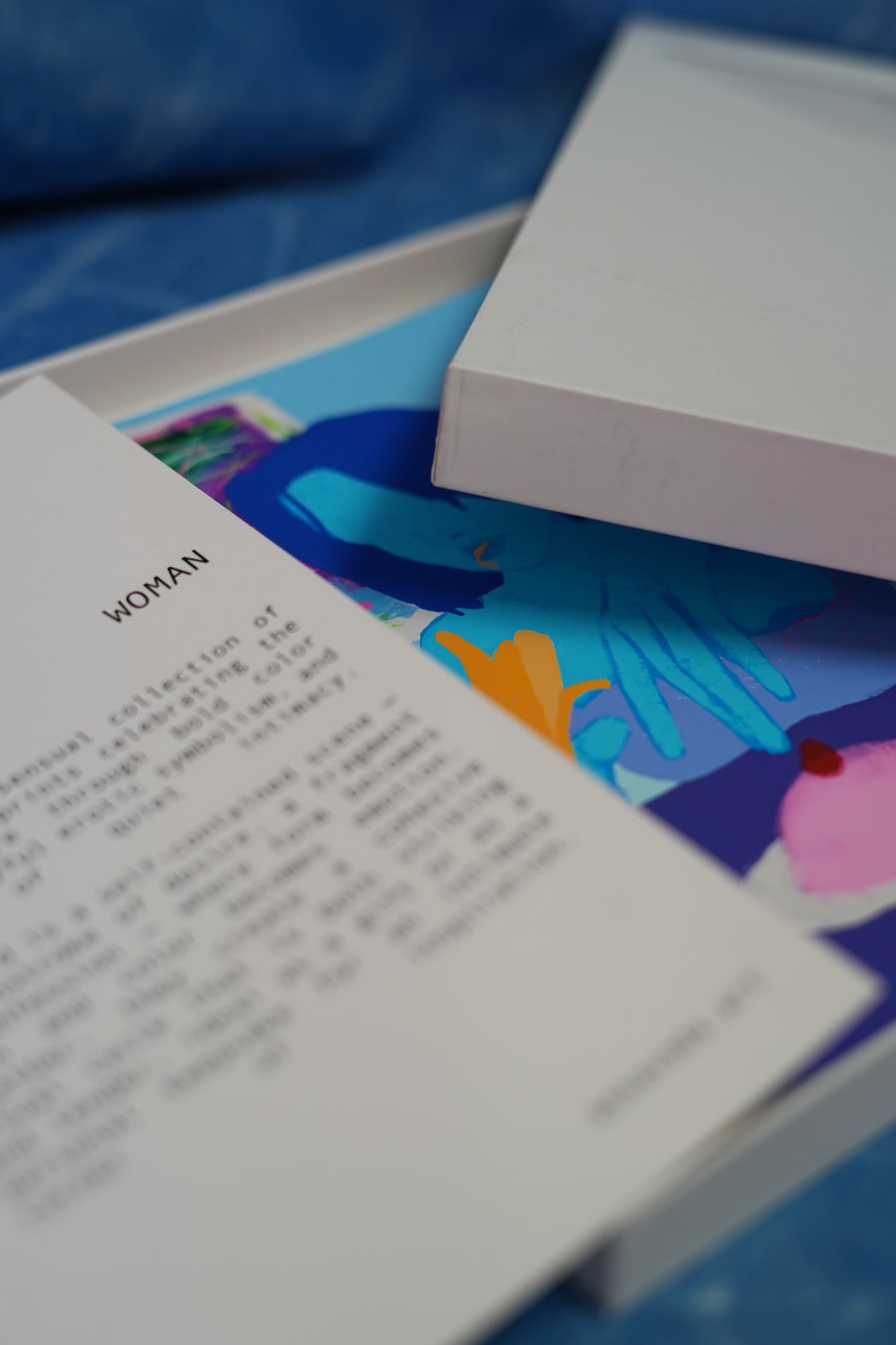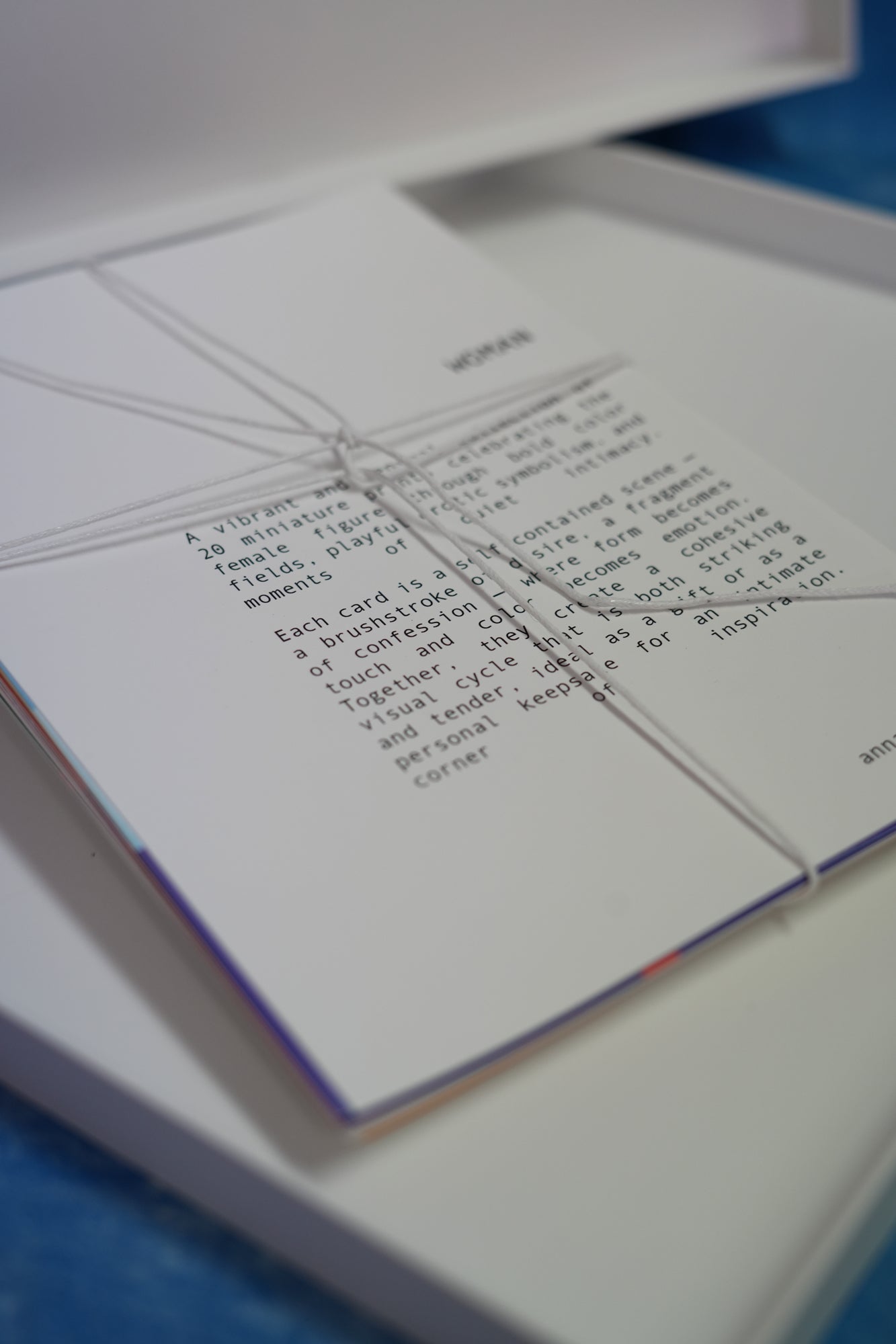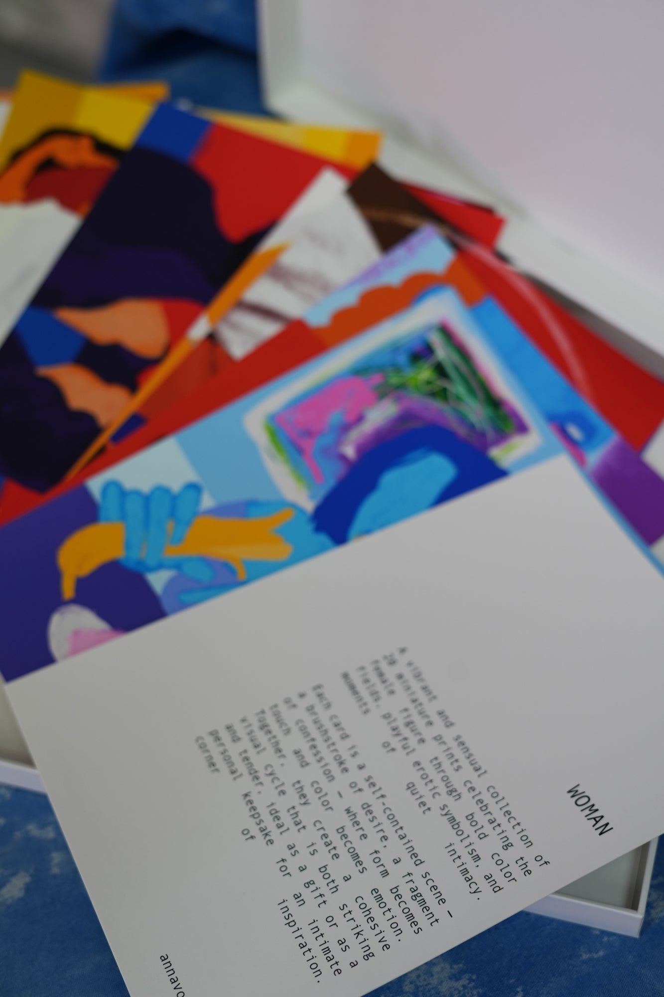 20 cards dedicated to the female figure: bold color fields, playful eroticism, and quiet moments of intimacy. A vibrant and sensual collection.